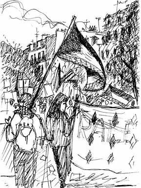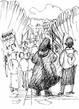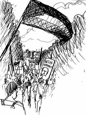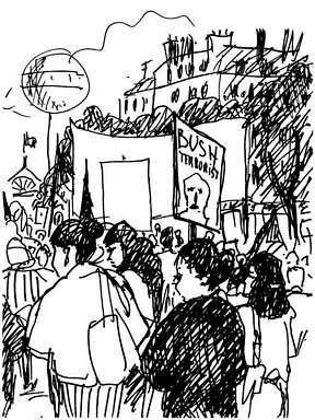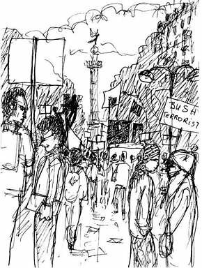 2) - Plus tard, vers 17h, on piétine dans les rues autour de la Bastille pour la deuxième manif vers la place de la République, cette fois et contre la venue de “Dubya” Bush.